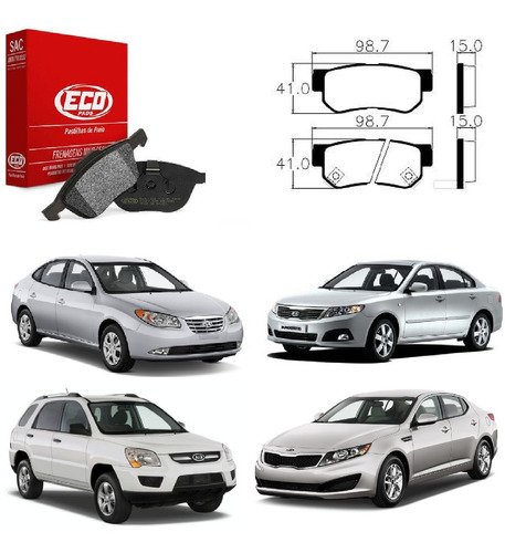 PASTILHA TRASEIRA HYUNDAI SANTA FE 2.0 2.7 01...06 /SONATA 2.0 2.7 V6 01... HYUNDAI AZERA 3.3 V6 06...11 AUTOMATICO /ELANTRA 07... TUCSON 04... KIA SPORTAGE 2.0 2.7 05...10 *SISTEMA MANDO* ECO1440