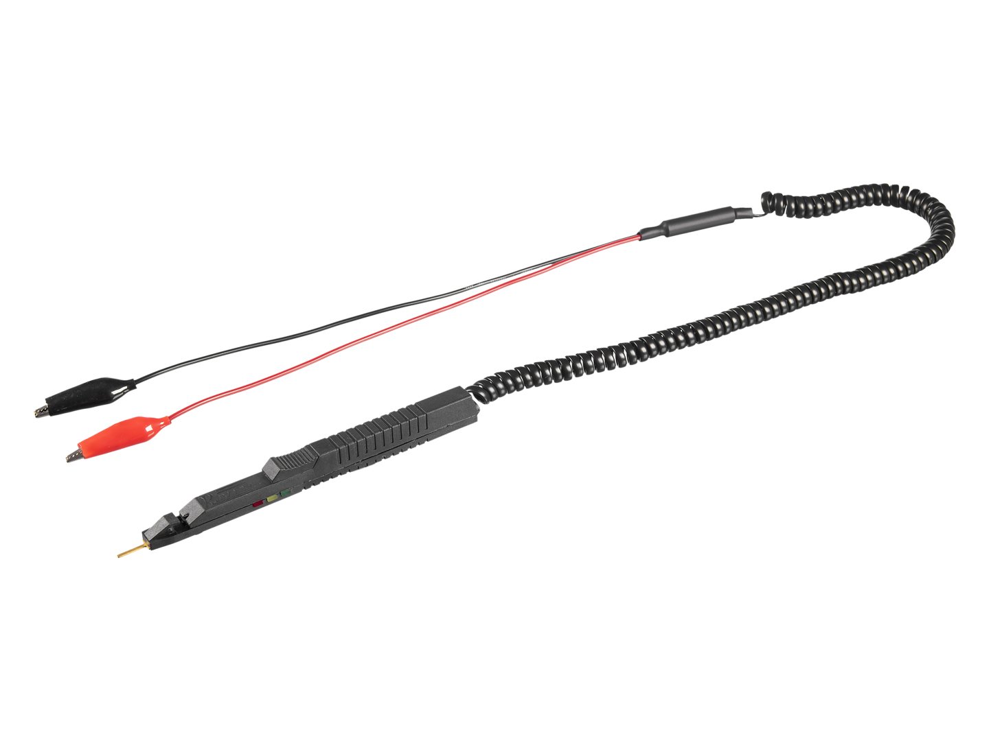 Ponta de polaridade com 3 leds indicadores: vermelho (positivo), verde (negativo) e amarelo (circuito aberto). Manual incluso.